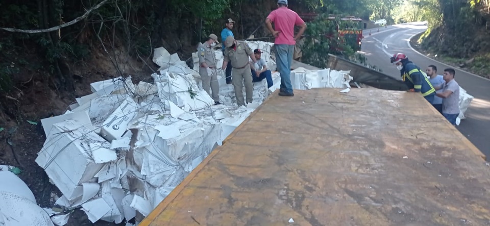 Segundo as primeiras informações, o motorista da carreta perdeu o controle da direção em uma curva da rodovia e a carga acabou caindo da carroceria sobre um homem de bicicleta, que passava naquele momento pela via.