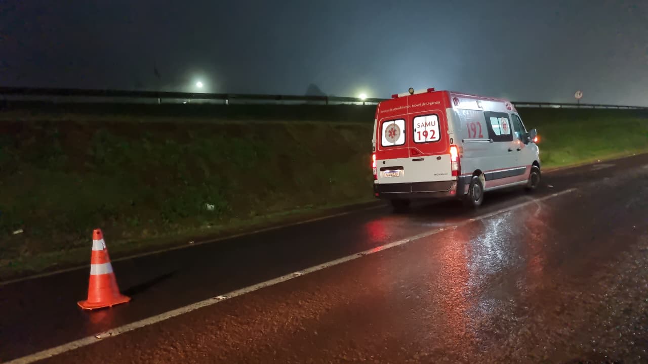 Os relatos são de que a mulher, de 43 anos, seguia pela via com a motociclista e perdeu o controle da direção na pista molhada.