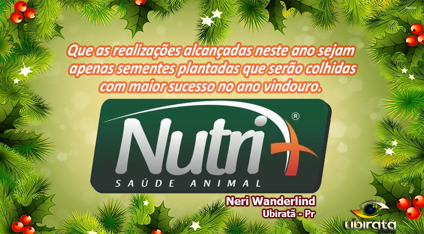 Mensagem da NUTRIMAIS SAÚDE ANIMAL – Comércio de insumos e suplementação agropecuária. Tel. (44) 9 9999 7646 (Neri Wanderlind) a todos seus clientes e amigos.