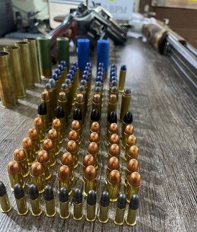 Ainda na sequência, após um dos envolvidos assumir a propriedade das armas, ele ainda indicou que na sua residência havia mais algumas coisas, sendo então que a equipe foi até a residência dele e lá sua esposa autorizou a entrada da equipe, e na sequência, entregou mais um revólver cal. 357, uma espingarda Cal. 16 e uma cal. 22 e várias munições.