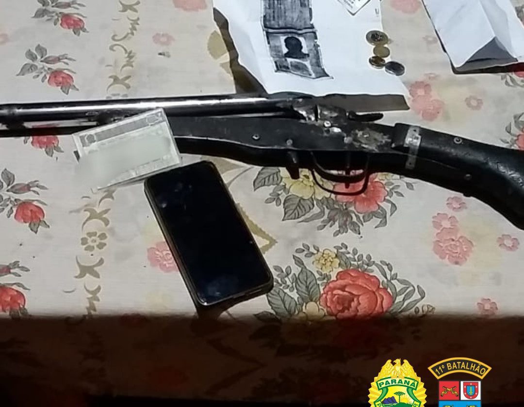 Diante do risco de perder informações importantes para o andamento do processo, os policiais entraram na residência e localizaram uma espingarda calibre 28, um celular, uma quantia em dinheiro e a identificação de um homem. Logo na sequência, um jovem apareceu no local e se identificou como sendo filho do morador e acompanhou os procedimentos da polícia, sendo entregues a ele os pertences do seu pai, o qual ele disse não saber o paradeiro. Além disso, o rapaz disse que a chácara pertence a uma pessoa e está arrendada a um terceiro.