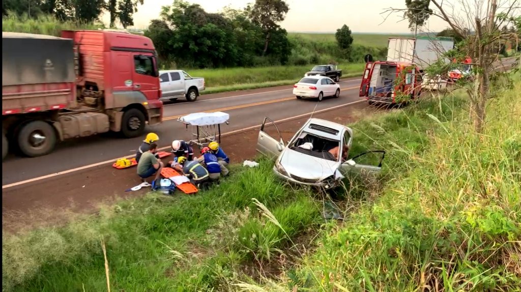 Quatro pessoas ficaram feridas no final da tarde de domingo (27), após colisão contra um barranco as margens da BR 369, entre Cascavel e Corbélia.