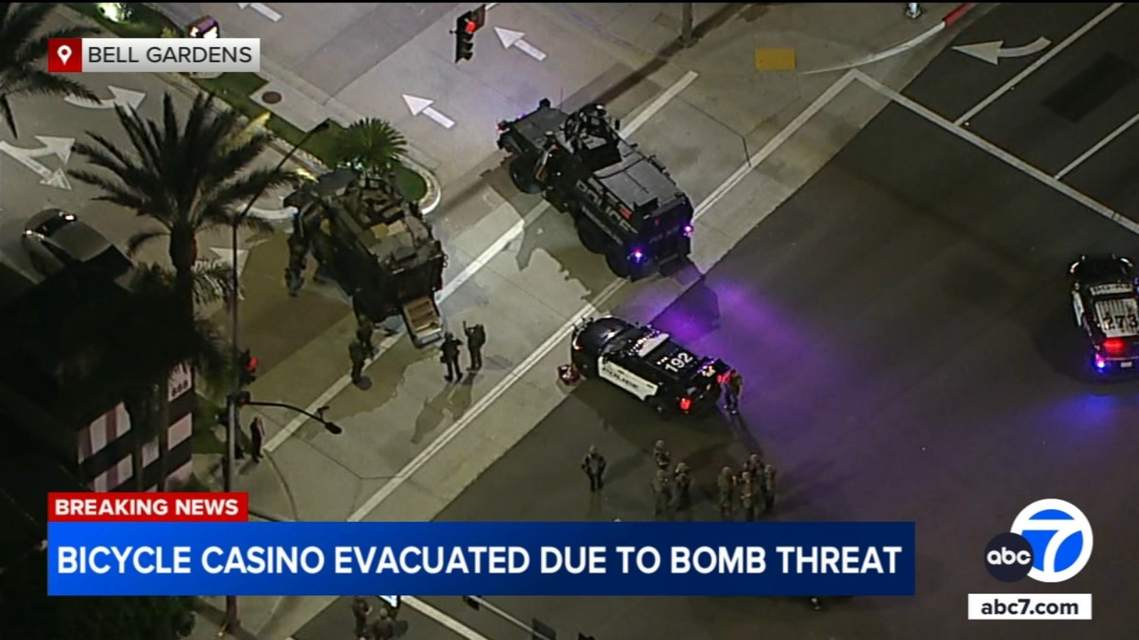 BELL GARDENS, Calif. (KABC) — A reported bomb threat prompted the evacuation of the Parkwest Bicycle Casino in Bell Gardens on Thursday evening, according to police.