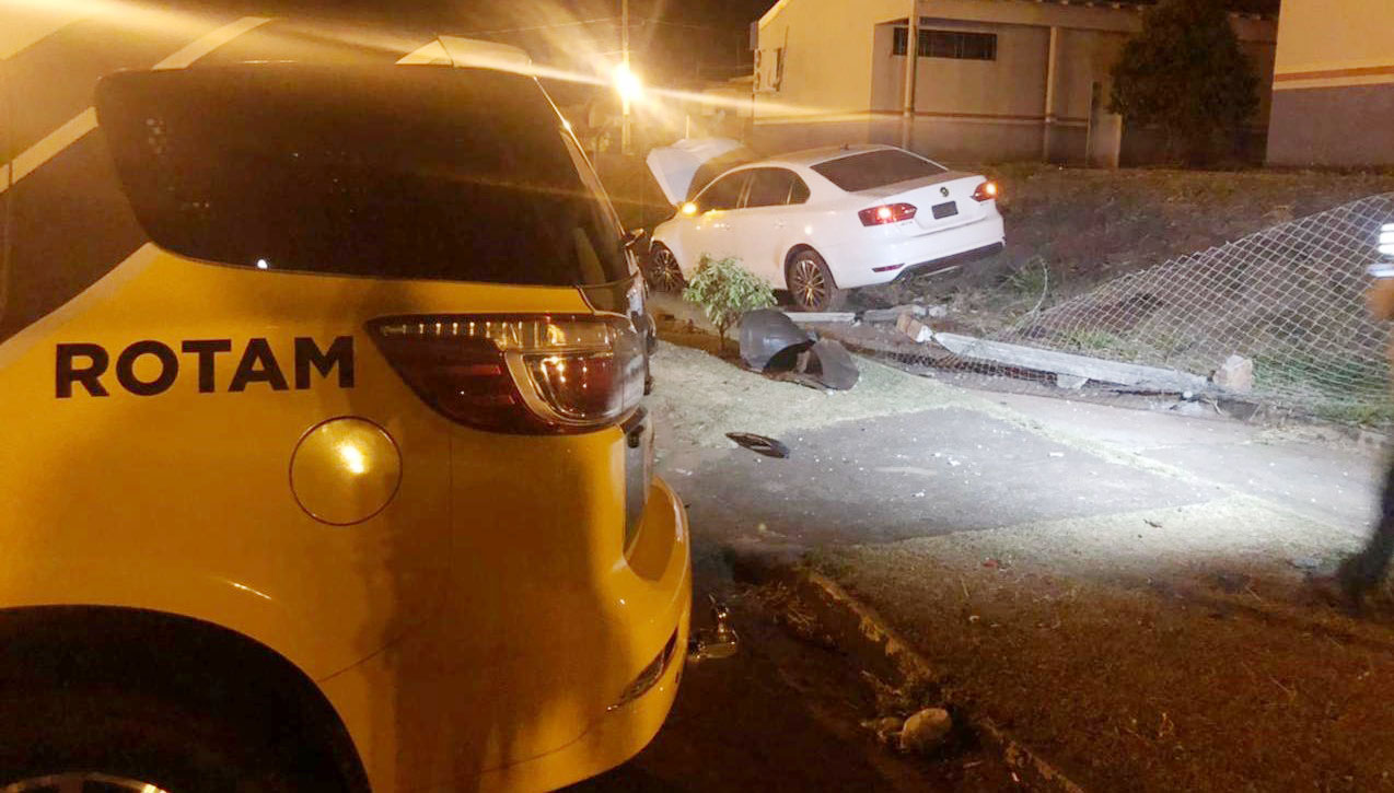 No local, um veículo tinha colidido contra a cerca de um colégio no Conjunto Sonho Meu, por volta da 1:00 hora. Os policiais notaram que o carro estava abandonado e sem as placas. Ao verificar o chassi do veículo VW Jetta, cor branca, foi constatado ser produto de roubo. Fato ocorrido na cidade de Mariluz, na sexta-feira, (24).