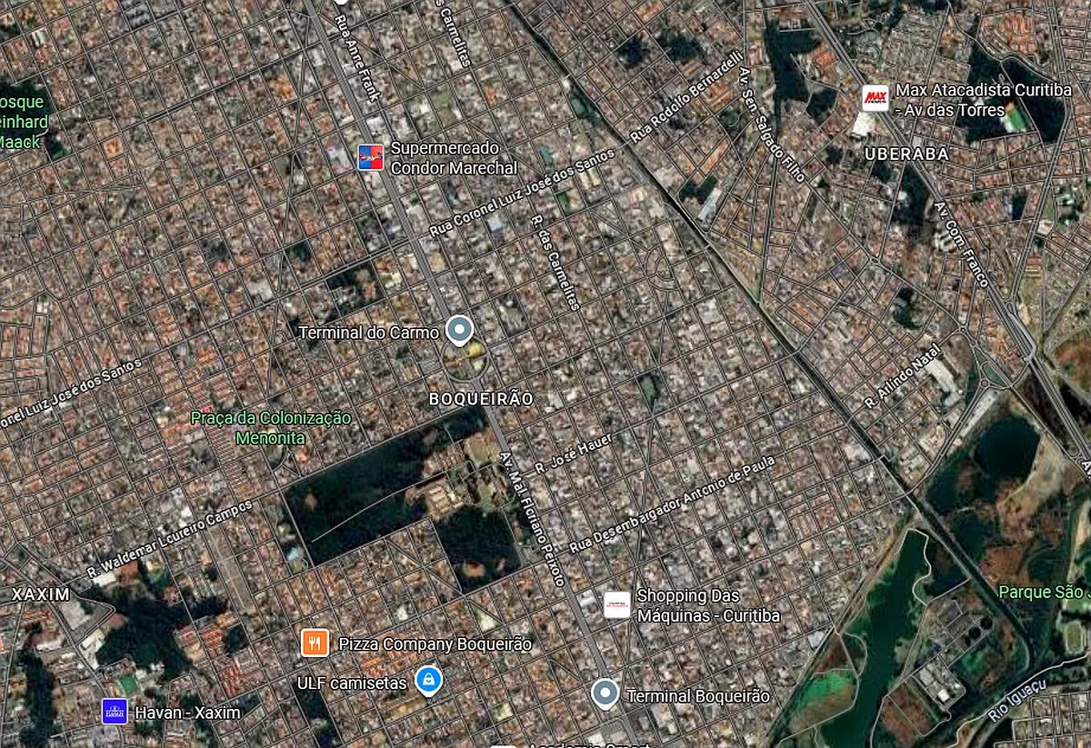 Na área central, correspondente ao círculo azul da bandeira brasileira, ficam a Rua da Cidadania do Boqueirão e o Santuário do Carmo, contornados pelas ruas Italino Peruffo e Josepha Daren Destefni.