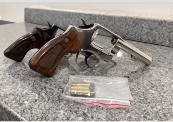 A equipe foi ao local e ao abordar o veículo, localizou os dois revólveres calibre 38 atrás da caixa de som.