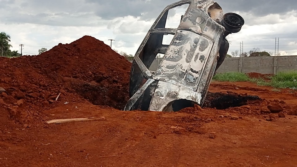 A Polícia Militar foi comunicada do fato neste domingo e ao chegar ao local encontrou o automóvel completamente destruído pelas chamas. Até as placas foram queimadas, impossibilitando a identificação do proprietário.